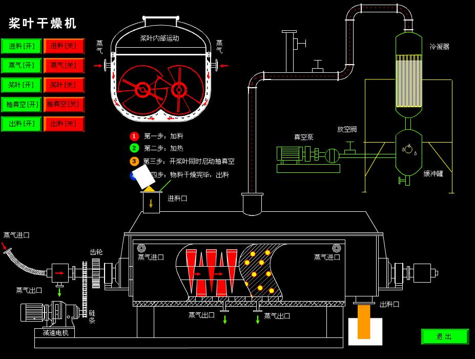 漿葉干燥機已成功地用于食品、化工、石化、染料、工業(yè)污泥等領(lǐng)域。設(shè)備傳熱、冷卻、攪拌的特性使之可以完成以下單元操作:燃燒(低溫)、冷卻、干燥(溶劑回收)加熱(融化)、反應(yīng)和滅菌。攪拌漿葉同時又是傳熱面,使單位有效容積內(nèi)傳熱面積增大,縮短了處理時間。楔型漿葉傳熱面又具有自清潔功能。壓縮--膨脹攪拌功能使物料混和均勻。物料沿軸向成"活塞流"運動,在軸向區(qū)間內(nèi),物料的溫度、濕度、混合度梯度很小。用導熱油做熱介質(zhì)漿葉干燥機可完成低溫燃燒工作。如:二水硫酸鈣(Ca2SO4·2H2O) 燃燒轉(zhuǎn)化為半水硫酸鈣(Ca2SO4·1/22H2O)。碳酸氫鈉(NaHCO3)經(jīng)煅燒轉(zhuǎn)化為純堿(Na2HCO3)等。通入冷卻介質(zhì),如水、冷卻鹽水等即可用來冷卻。如:使用于純堿行業(yè)的漿葉式?jīng)鰤A機,取代老式的空氣冷卻涼堿機,節(jié)省了能源及尾氣處理設(shè)備,降低了操作費用。干燥,設(shè)備主要的功能,不使用熱空氣,使溶劑回收、能源消耗、環(huán)境控制處于易處理的理想狀態(tài)。對需回收溶劑、易燃易氧化熱敏性物料尤為適應(yīng)。已廣泛用于精細化工、石化、染料行業(yè)。軸向區(qū)間內(nèi),溫度、濕度、混合度的均勻性,使得設(shè)備可用來加熱或融化,或進行一些固體物料反應(yīng)。在復合肥及變性淀粉行業(yè)均已成功使用。漿葉干燥機可用來對食物和面粉進行滅菌處理。單位有效容積內(nèi)大的加熱面積,很快就將物料加熱到滅菌溫度,避免了長時間加熱而改變物料品質(zhì)。