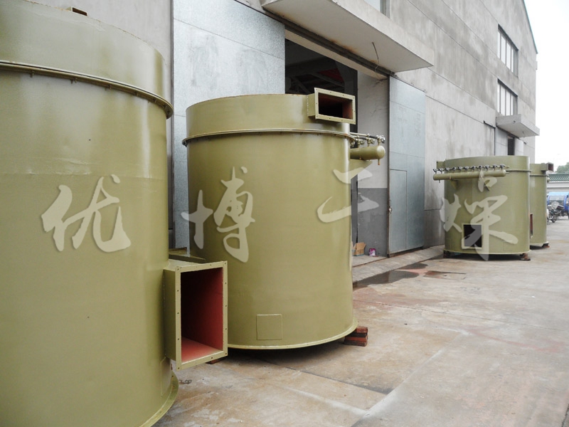 脈沖袋式除塵器主要由上箱體、中箱體、灰斗、進風均流管、支架濾袋及噴吹裝置、卸灰裝置等組成。含塵氣體從除塵器的進風均流管進入各分室灰斗,并在灰斗導流裝置的導流下,大顆粒的粉塵被分離,直接落入灰斗,而較細粉塵均勻地進入中部箱體而吸附在濾袋的外表面上,干凈氣體透過濾袋進入上箱體,并經各離線閥和排風管排入大氣。隨著過濾工況的進行,濾袋上的粉塵越積越多,當設備阻力達到限定的阻力值(一般設定為1500Pa )時,由清灰控制裝置按差壓設定值或清灰時間設定值自動關閉一室離線閥后,按設定程序打開電控脈沖閥,進行停風噴吹,利用壓縮空氣瞬間噴吹使濾袋內壓力聚增,將濾袋上的粉塵進行抖落(即使粘細粉塵亦能較徹底地清灰)至灰斗中,由排灰機構排出。
