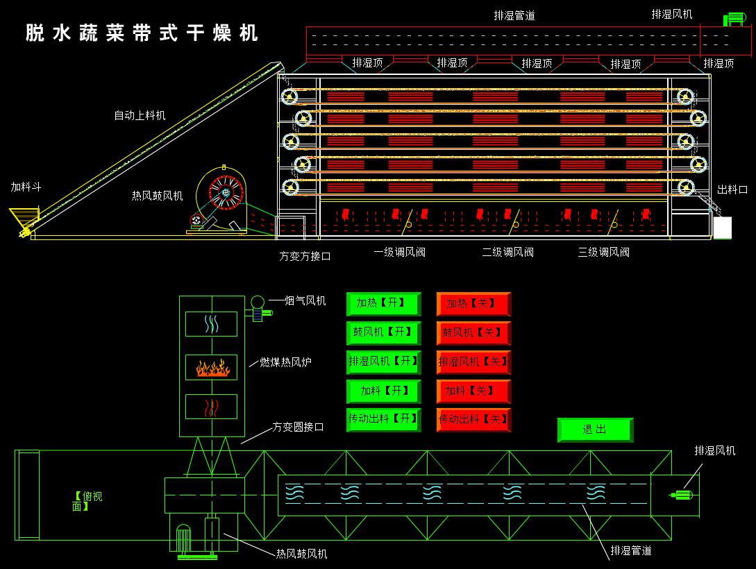 蔬菜脫水干燥機(jī)分別有加料器、干燥床、熱交換器及排濕風(fēng)機(jī)等主要部件組成。